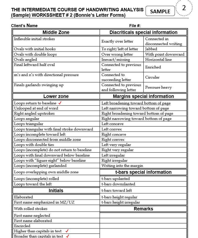 The Intermediate Course provides the link between the Comprehensive Course and the Master’s Course of Handwriting Analysis and is intended for students with some prior knowledge of handwriting analysis. It uses the integrated trait stroke/holistic approach but does not go into as much depth as the Master Course of Handwriting Analysis.